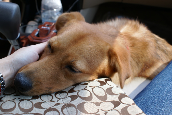 Mei mei在車上竟喜歡把頭靠在我的包包上睡覺 牠算視貨嗎?
