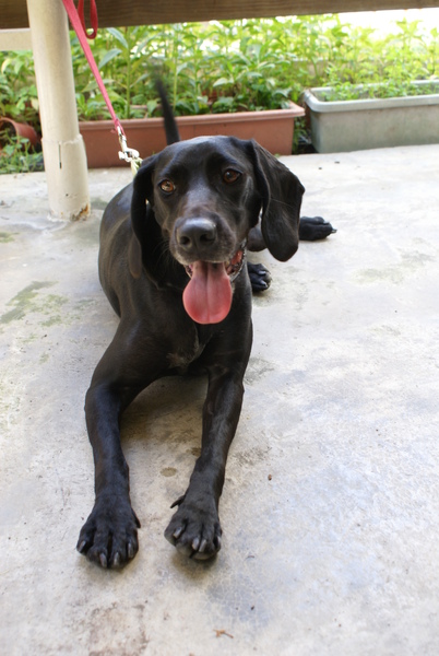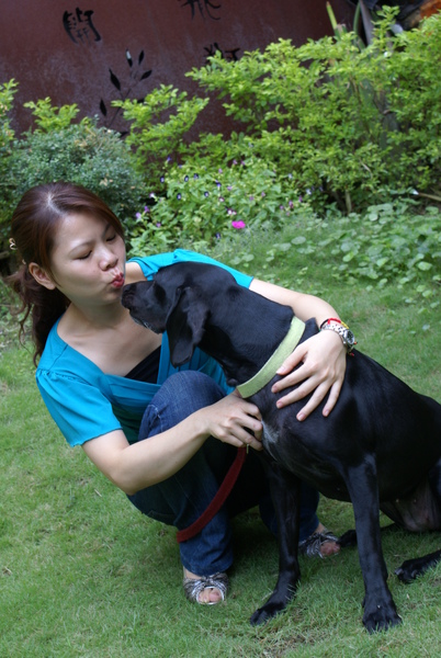 大黑一直不斷的“聞“我 所以我就索性嘟起嘴看牠是要“聞“還是要“吻“